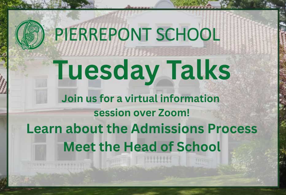 Tuesday Talks are virtual informational sessions for prospective families interested in Pierrepont School and the admissions process.
